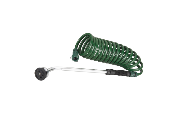 Dieses vielseitige Schlauchset besteht aus einem 7,5 m langen PU-Spiralschlauch, der sich zum Bewässern ausziehen und zum platzsparenden Verstauen wieder zusammenrollen lässt. Zum Set gehört eine 45 cm lange Brause mit sechs Strahlarten, ideal zum Erreichen von Hängeampeln oder zum Reinigen schwer zugänglicher Stellen. Leicht und robust bietet das Set eine flexible und verwicklungsfreie Lösung für alle Ihre Gartenbewässerungsbedürfnisse.