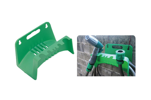 Este práctico colgador de mangueras de pared está diseñado para mantener su jardín ordenado y organizado. Cuenta con ranuras integradas para accesorios que permiten guardar cómodamente las boquillas y conectores junto a la manguera. Fabricado en plástico duradero y resistente a la intemperie, evita que la manguera se enrede y prolonga la vida útil de su equipo de riego.