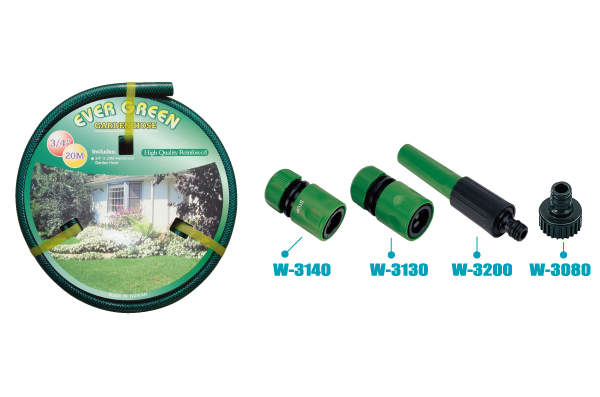 El GH-415-3200 es un práctico kit de riego con una manguera de jardín reforzada de 1/2" y 15 metros. Este conjunto estilizado incluye un juego de 4 boquillas giratorias con conectores esenciales (W-3140, W-3130, W-3200, W-3080), lo que proporciona una solución sencilla pero duradera para el riego y la limpieza diarios del jardín.